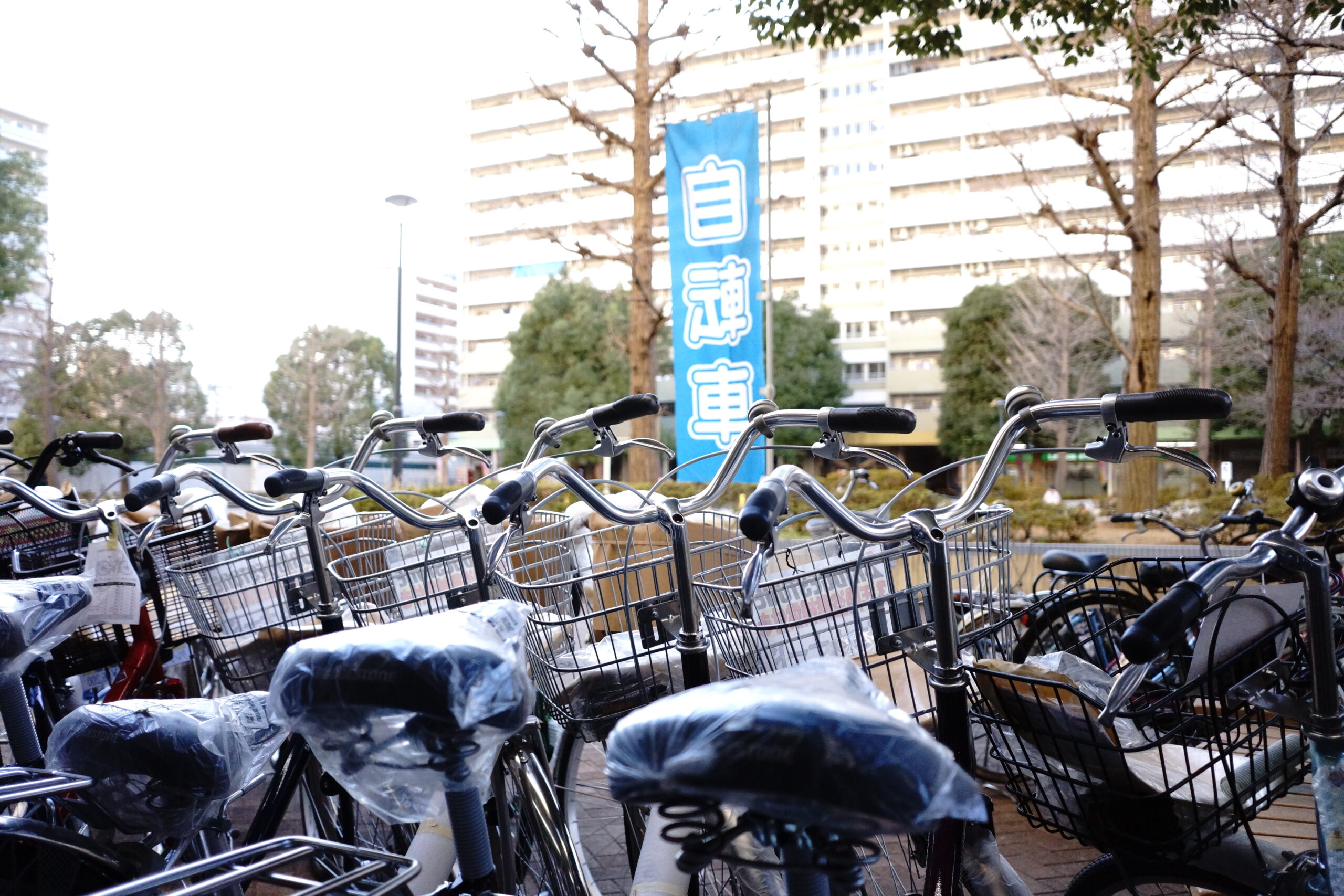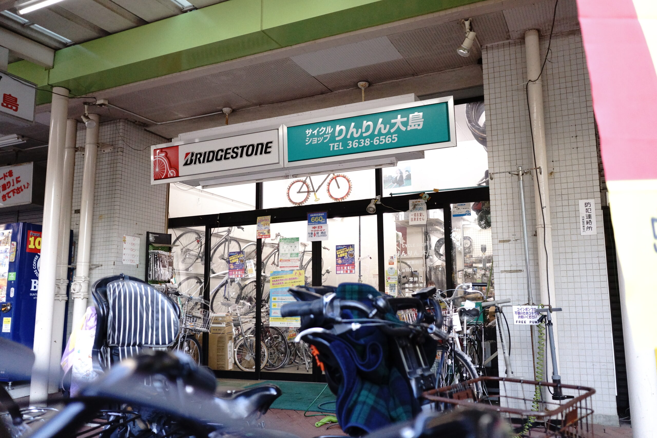 大島駅を降り、『UR都市機構大島六丁目団地』を目指して歩くこと2分。大きな広場に面した場所にたくさんの自転車が見えたら、この場所こそが今回取材にご協力くださった “町の自転車屋さん”、サイクルショップりんりん大島さんです。